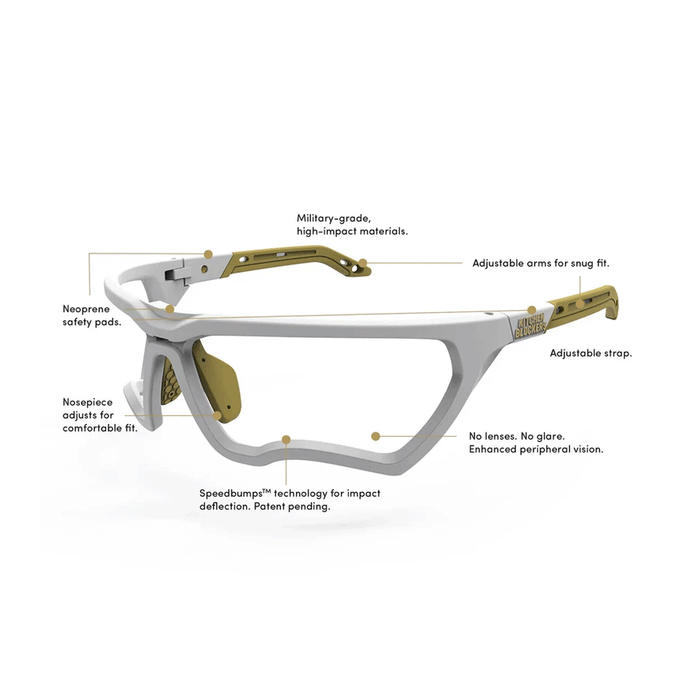 • Lens Free Optimal Frame Shape: By having no lenses, Kitchen Blockers allows you to perform at your highest level without any light refractions and means zero fogging while you play the sport you love! Carefully crafted frame design using patented speed bump technology provides full peripheral vision so you are able to see whats happening on the court from all angles!